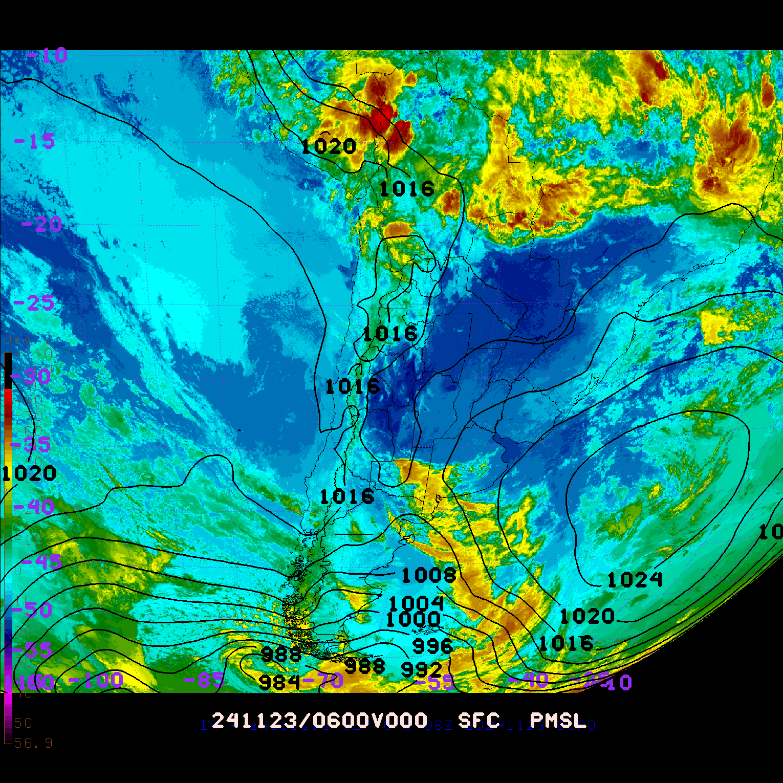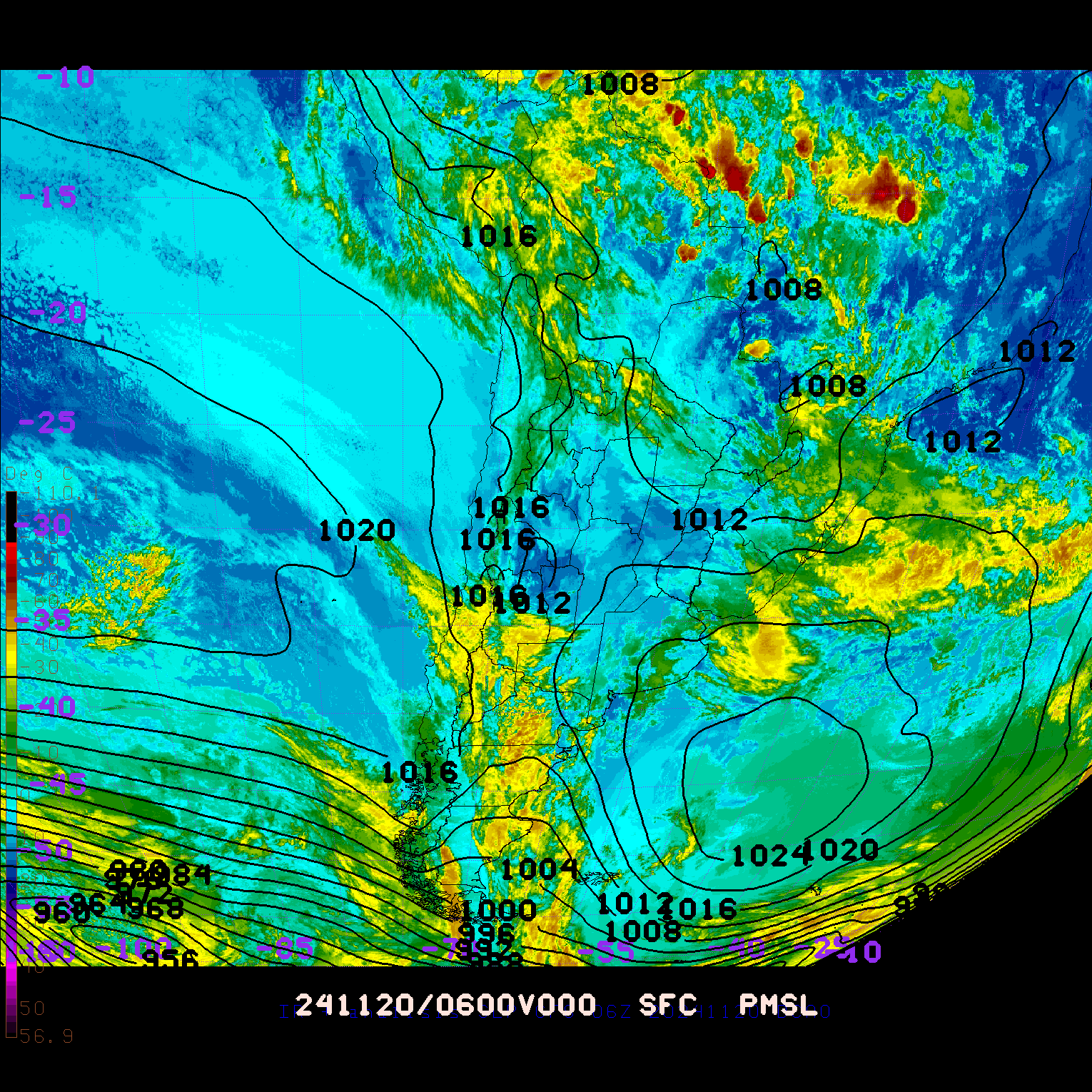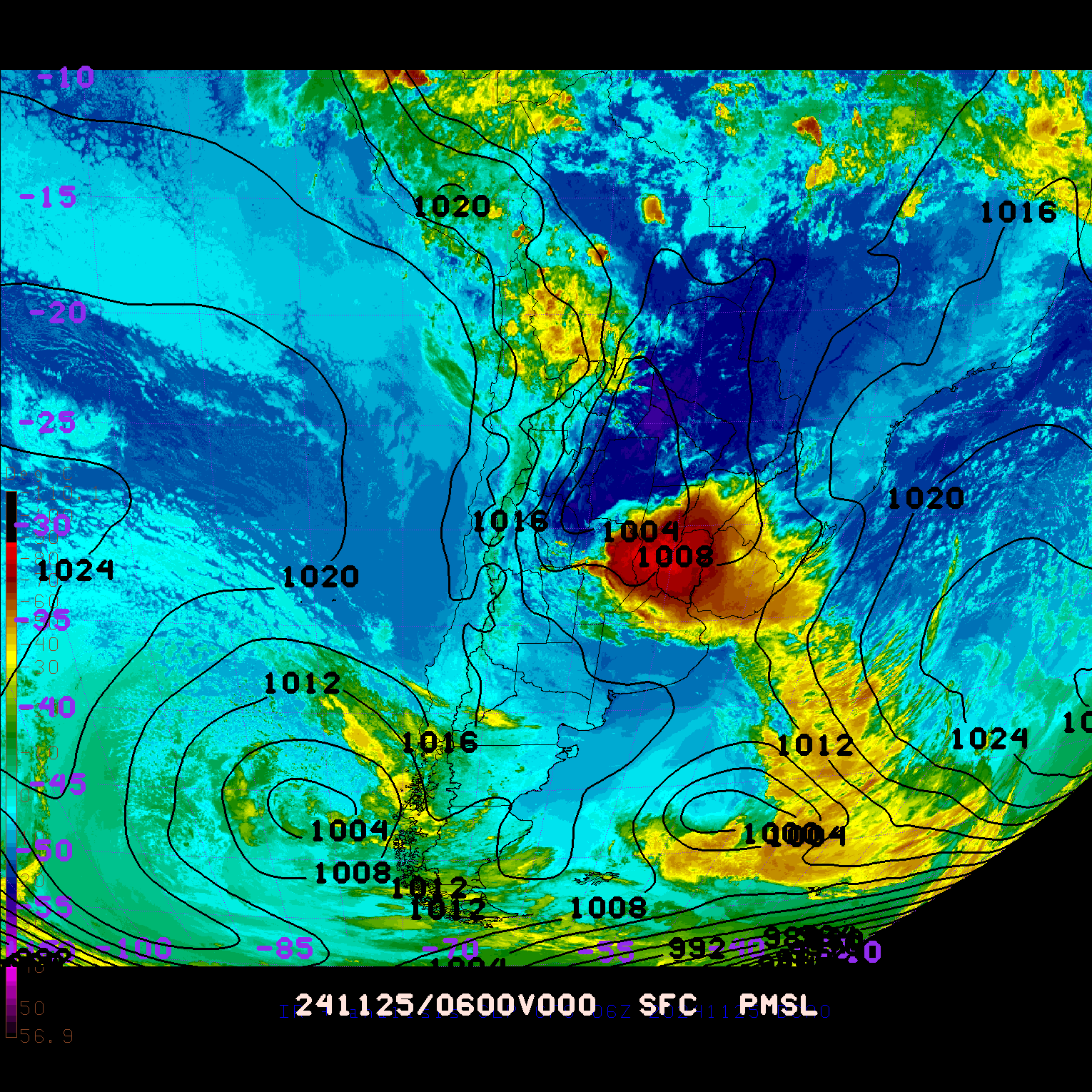 ANALISIS GFS SLP (6Z) Y SATELITE IR - archivo 2024