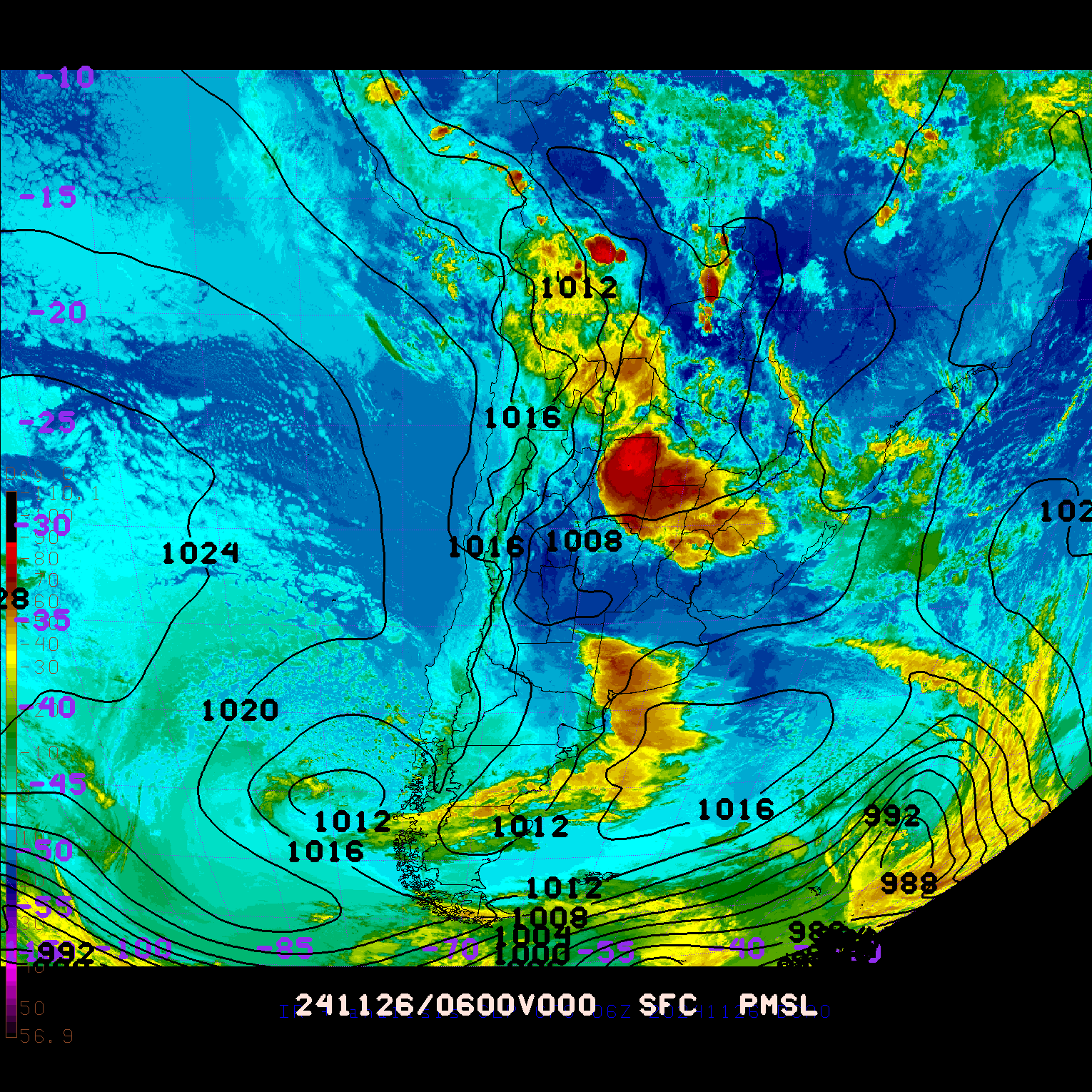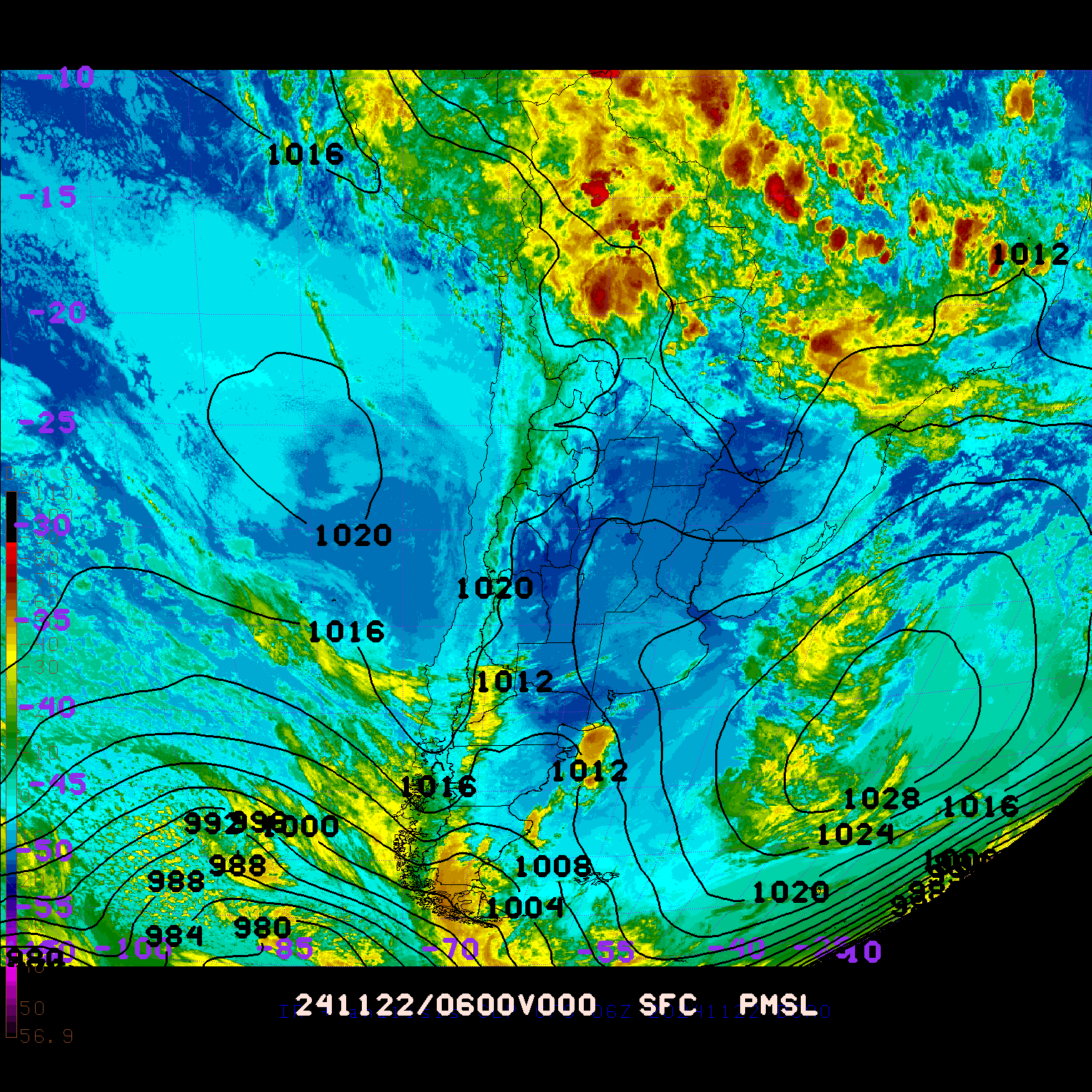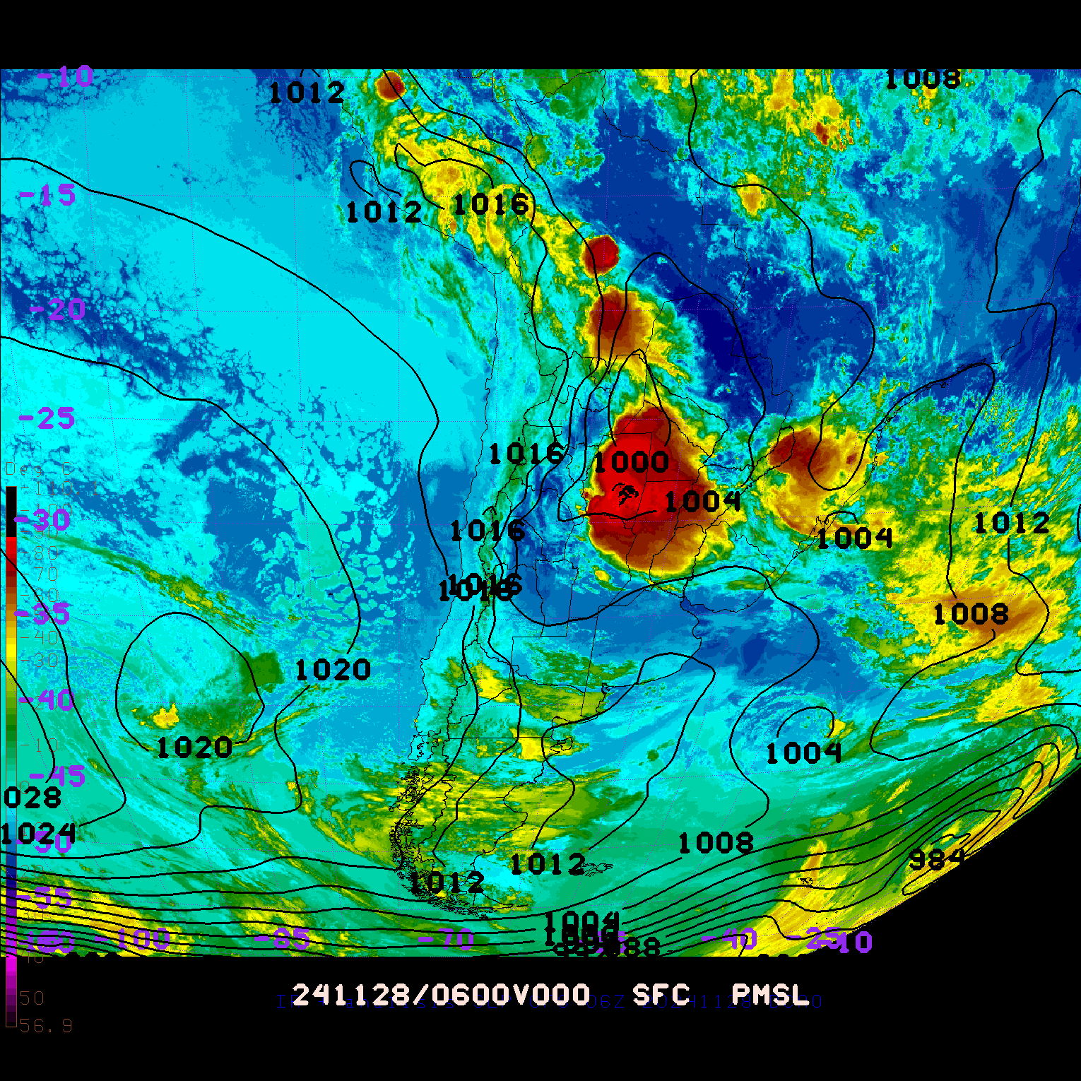 ANALISIS GFS SLP (6Z) Y SATELITE IR - archivo 2024